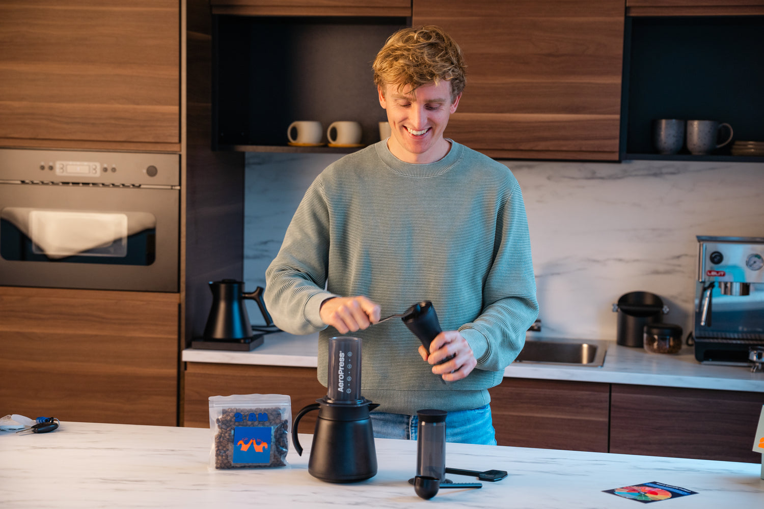 Non pre-maciniamo il nostro caffè, poiché ciò ne causerebbe un deterioramento più rapido della freschezza. Per garantirvi di poter continuare a gustare il nostro caffè fresco, offriamo un macinacaffè. Questo vi permette di macinare i chicchi da soli per elettrodomestici come macchine da caffè filtro, French press, AeroPress, moka e macchine per espresso, garantendovi sempre un sapore e una freschezza ottimali.